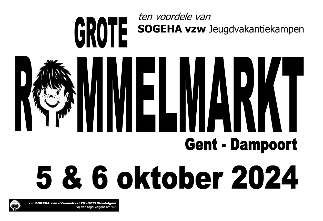 Het 1ste weekend van oktober verkoop van alle ingezamelde spullen op het Dampoortplein te Gent, onze grootste steunactie gedurende het jaar.